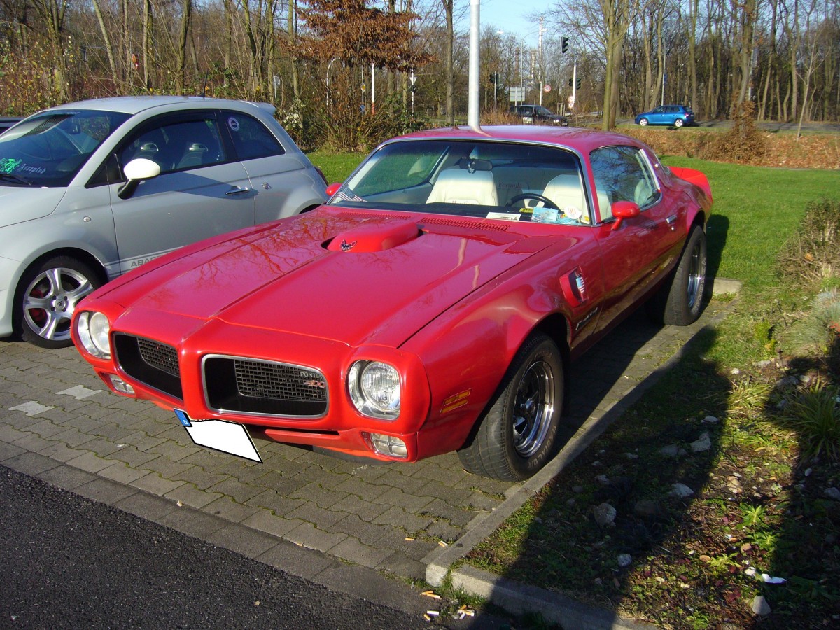 Pontiac Firebird des Modelljahres 1972 in der Lackierung cardinalred. Oldtimertreffen an der Gelsenkirchener Garage 10 am 30.12.2015.