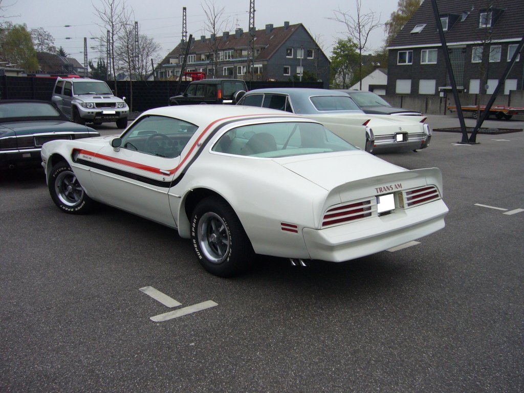 Heckansicht eines 1976´er Pontiac Firebird-Trans-Am. Besucherparkplatz der Düsseldorfer Classic Remise am 06.04.2012.