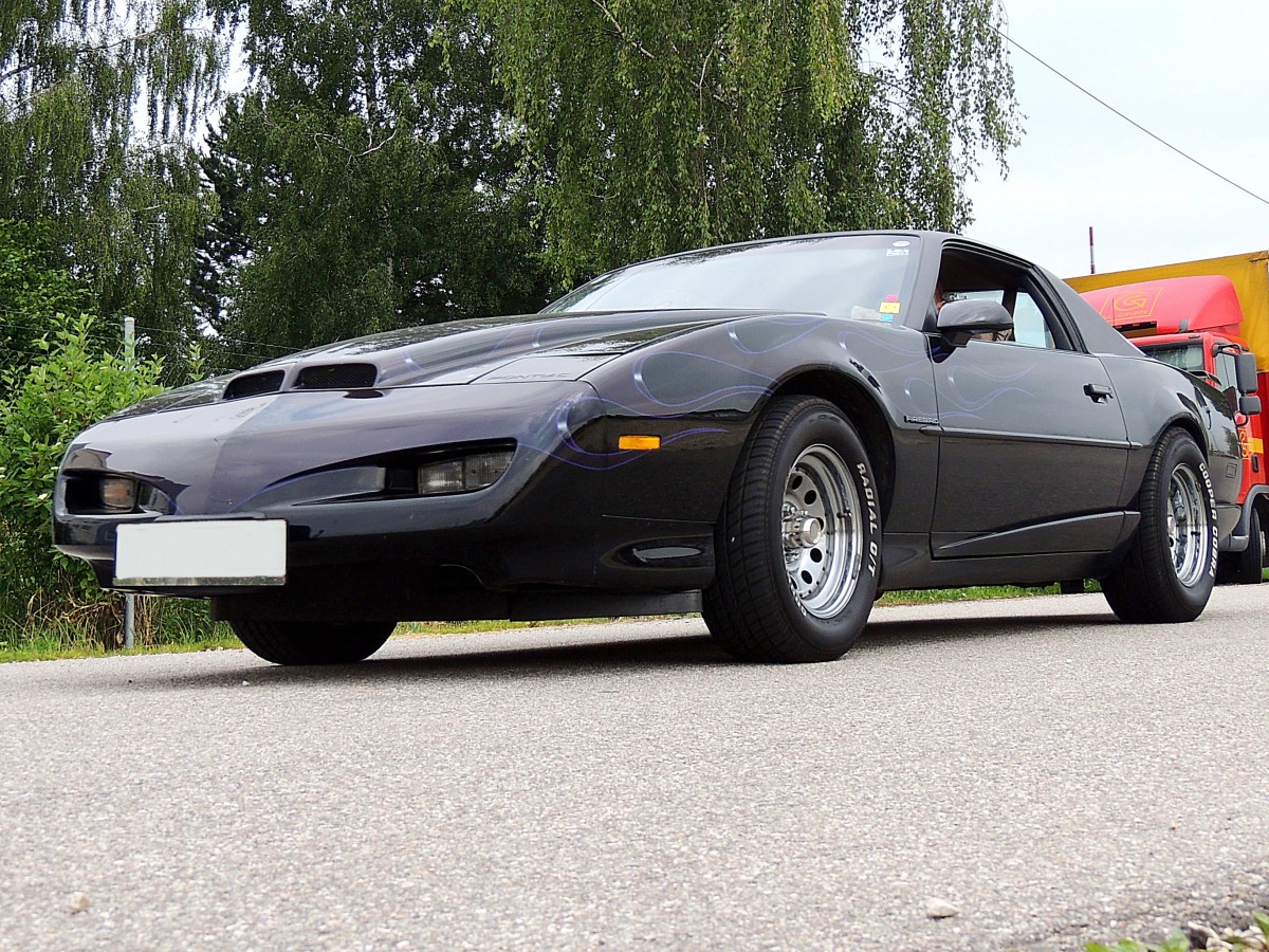 Pontiac Firebird Trans Am im Farbton blaze red aus dem Jahr 1985. Die Baureihe Firebird kam 1967 auf den Markt, als General Motors mit dem Chevrolet Camaro ein Konkurrenzmodell zum erfolgreichen Ford Mustang in die Modellpalette aufnahm. Der Firebird basierte auf der Plattform des Camaro. Im Modelljahr 1985 setzte die GM-Tochter Pontiac 11.113 Autos dieses Typs ab. Der V8-Motor hat einen Hubraum von 5013 cm³ und leistet 193 PS. Oldtimertreffen am Cafe del Sol in Gelsenkirchen am 12.10.2025. Michael H.