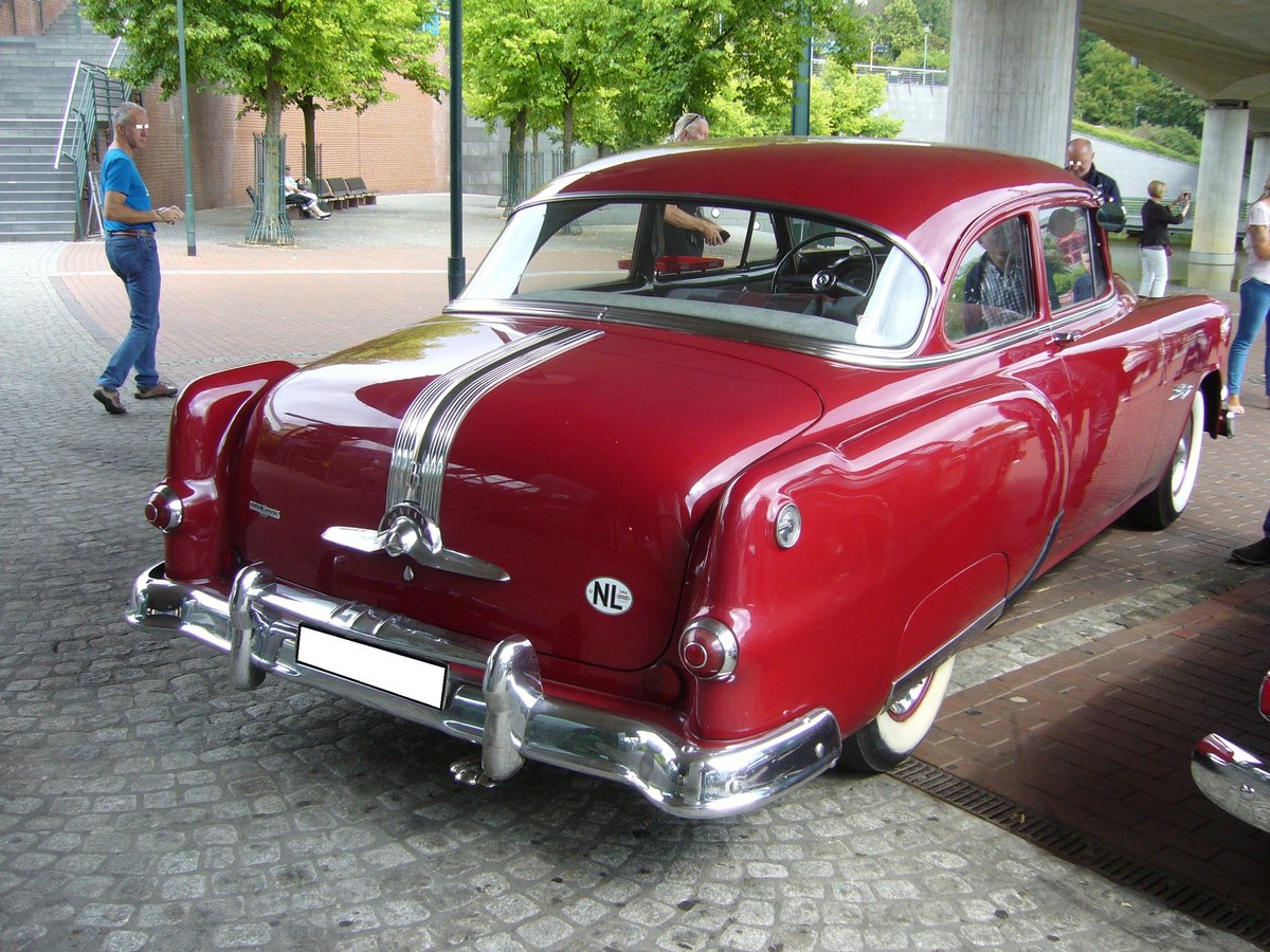 Es handelt sich ganz genau um einen Pontiac Series 28 Star Chief Catalina Hardtop Coupe des Modelljahres 1955. Diese Modellreihe war das Spitzenmodell dieses Modelljahres. Äußerlich erkenntlich an den drei verchromten Sternen auf der Fahrzeugflanke. Von diesem Modell verkaufte die GM-Division Pontiac von September 1954 bis Oktober 1955 99.929 Fahrzeuge zu einem Preis ab US$ 2499,00. Der V8-Motor hat einen Hubraum von 4704 cm³ und leistet 173 PS mit Schaltgetriebe oder 180 PS bei einem Automaticgetriebe.