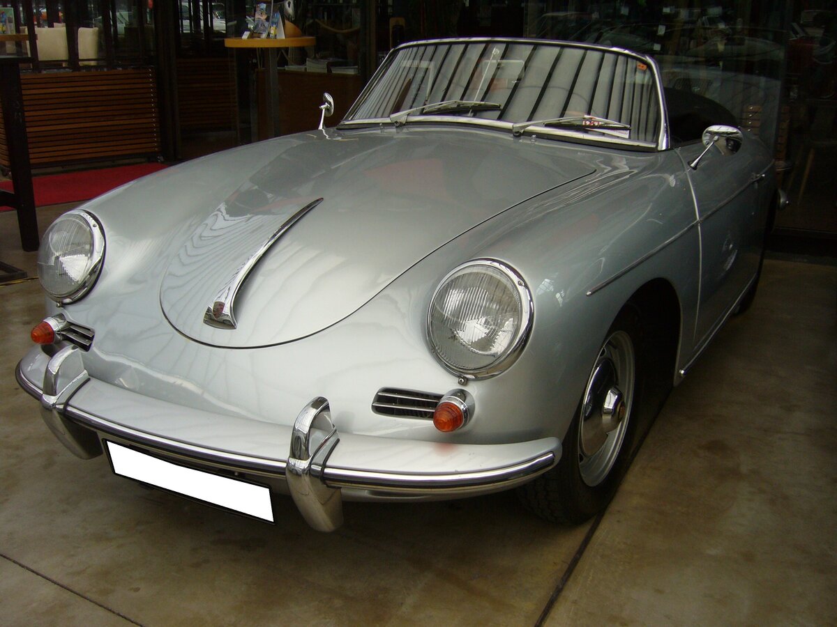 Porsche 356B 1600 T5 Roadster aus dem Jahr 1960. Für ein solches Cabriolet musste der geneigte Käufer damals mindestens DM 14.950,00 anlegen. Der abgelichtete 356´er ist mit dem kleinsten lieferbaren Motor für dieses Modell ausgestattet. Der im Heck verbaute, gebläsegekühlte Vierzylinderboxermotor hat einen Hubraum von 1582 cm³ und leistet 60 PS. Classic Remise Düsseldorf am 26.05.2022.