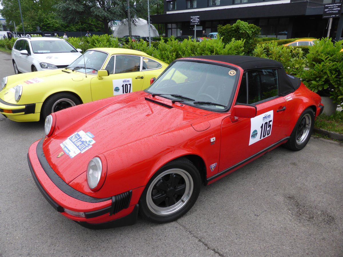 Porsche 911 Carrera (Baujahr 1987) bei der Internationalen Saar-Lor-Lux Classique. Start zum zweiten Tag am 28.05.2016 in Trier.