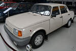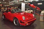 Ein rechts gelenkter Porsche 911 3.3 Turbo der Baureihe 930. In dieser Ausführung stand das damalige Toppmodell von 1977 bis 1989 im Verkaufsprospekt der Zuffenhausener. Der im Heck verbaute und gebläsegekühlte Sechszylinderboxermotor hat einen Hubraum von 3299 cm³ und leistet, mittels eines Abgas-Turboladers mit Ladeluftkühler der Marke KKK Typ 3, genau 300 PS. Die Höchstgeschwindigkeit gab das Werk damals mit 260 km/h an. Dann verarbeitete die Saugrohreinspritzung von Bosch aber auch 20 Liter Superbenzin auf 100 Kilometer. Classic car meeting in Abergavenny/South Wales am 25.05.2025.