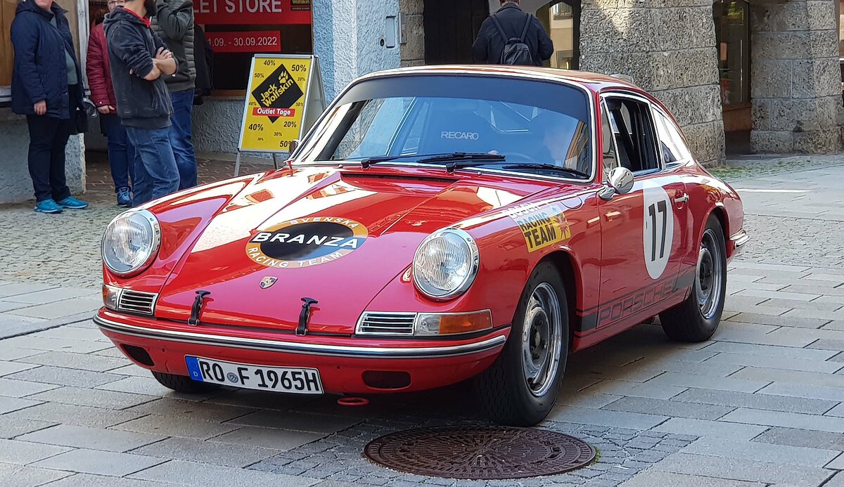 =Porsche 911, Bj. 1965, 1990 ccm, 208 PS, während der Präsentation der Rennteilnehmer des Rossbergrennens "Edelweiss-Bergpreis" 2022 im Markt Berchtesgaden.