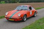 Porsche 911 S kommt beim Start zur Wertungsprüfung bei der Luxemburg Classic Rallye an. 29.09.2023
