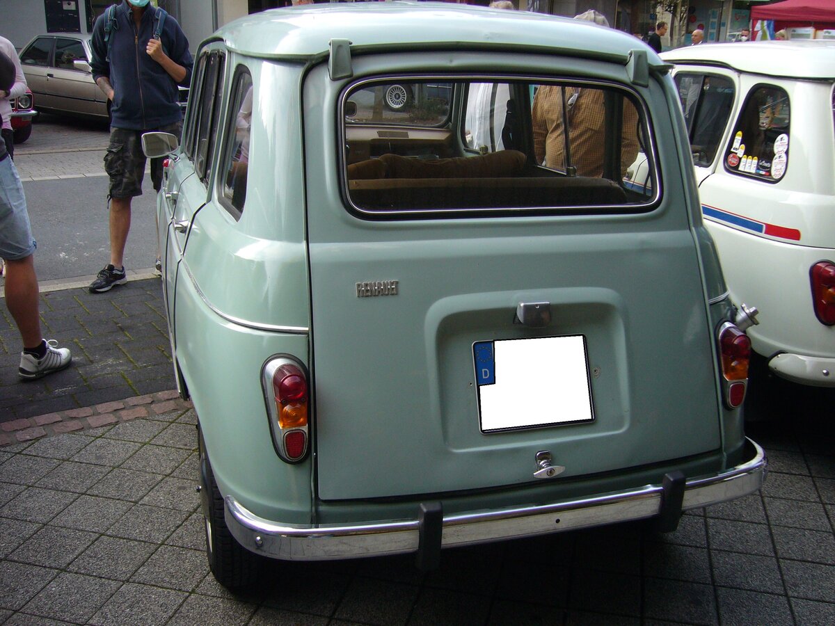 Heckansicht eines Renault R4 der Modelljahre von 1967 bis 1974. Oldtimertreffen in Heiligenhaus am 12.09.2021.