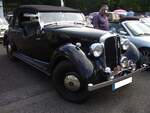 Rover Twelve Sports Tourer aus dem Jahr 1947. Dieses Modell kam bereits 1935 auf den Markt und wurde, bedingt durch WW2, 1940 eingestellt. Die Baureihe war damals als viertürige Limousine, viertüriger Phaeton, offener Tourenwagen und eben als Sports Tourer (Foto) lieferbar. Ende 1945 nahm Rover die Produktion ihrer PKW-Modelle wieder auf. Einziger, großer Unterschied zum Vorkriegsmodell, war der nun angesetzte Kofferraum am Fahrzeugheck. Der Vierzylinderreihenmotor hat einen Hubraum von 1496 cm³ und leistet rund 48 PS. British Car and Motorcycle Meeting am 20.07.2025 an Mo´s Bikertreff in Krefeld.