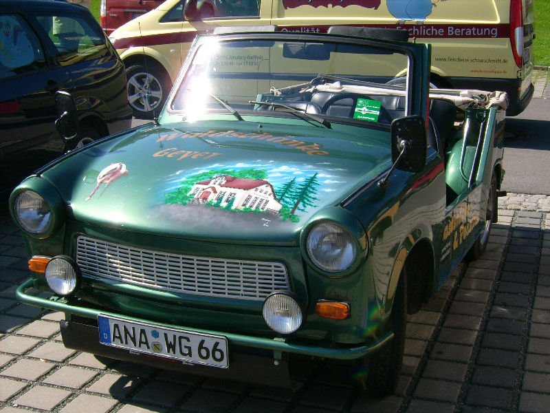 Plastickübel Trabant 601 Kübel auf dem Parkplatz vor der Zwönitztalhalle in Burkhardtsdorf anlässlich der Oldirundfahrt durchs Erzgebirge