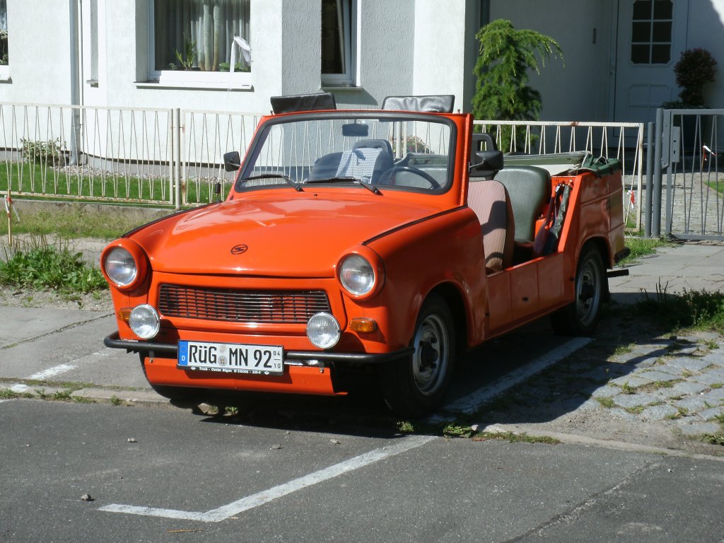 Dieser Trabant dagegen hatte,am 23.Juli 2012,sein Verdeck geöffnet als ich ihn in Bergen/Rügen fotografierte.