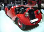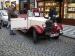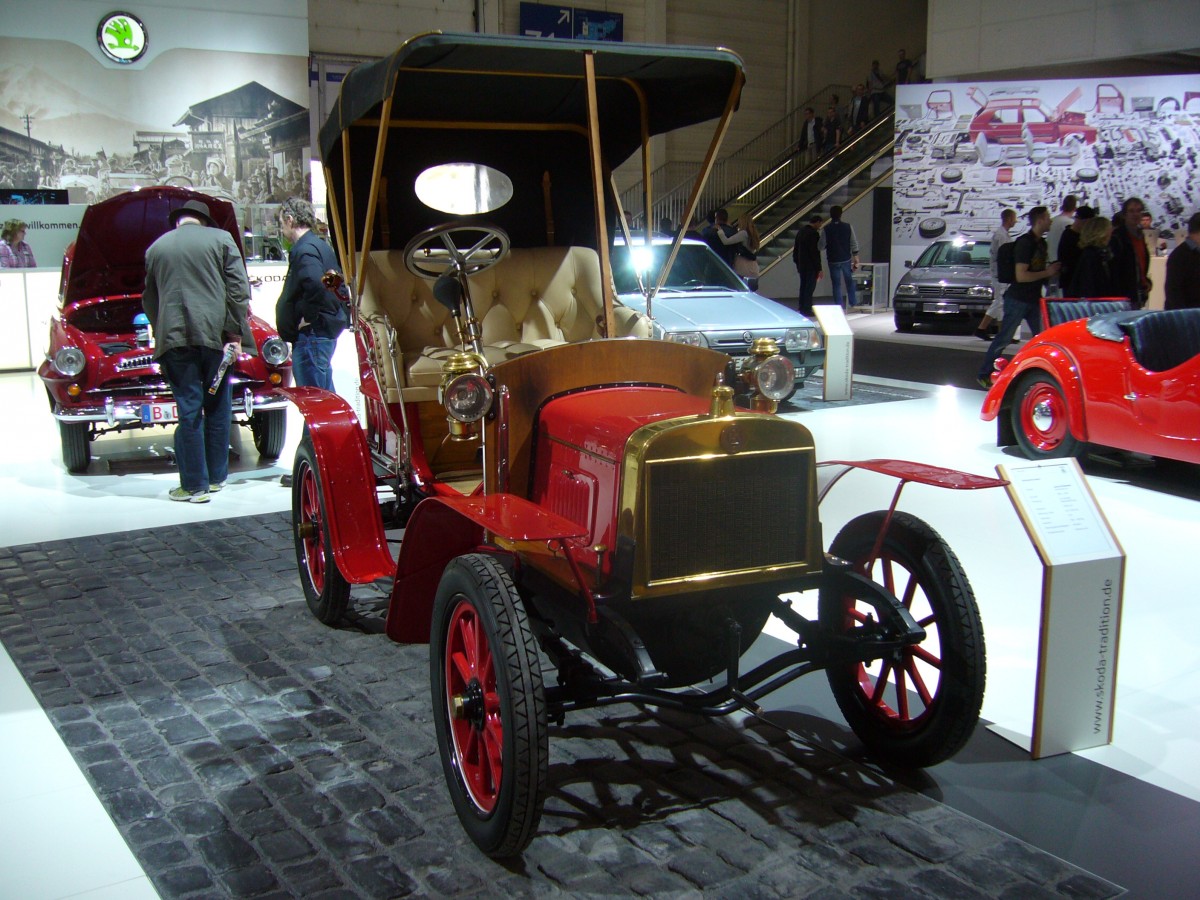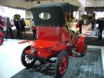 Laurin & Klement Voiturette A. 1905 - 1907. Die Firma Laurin & Klement ging 1925 im Skoda-Konzern auf. Von diesem Modell wurden in Mlada-Boleslav 44 Stück produziert. Der wassergekühlte V2-motor leistet 7 PS aus 1005 cm² Hubraum. Techno Classica Essen am 30.03.2014.