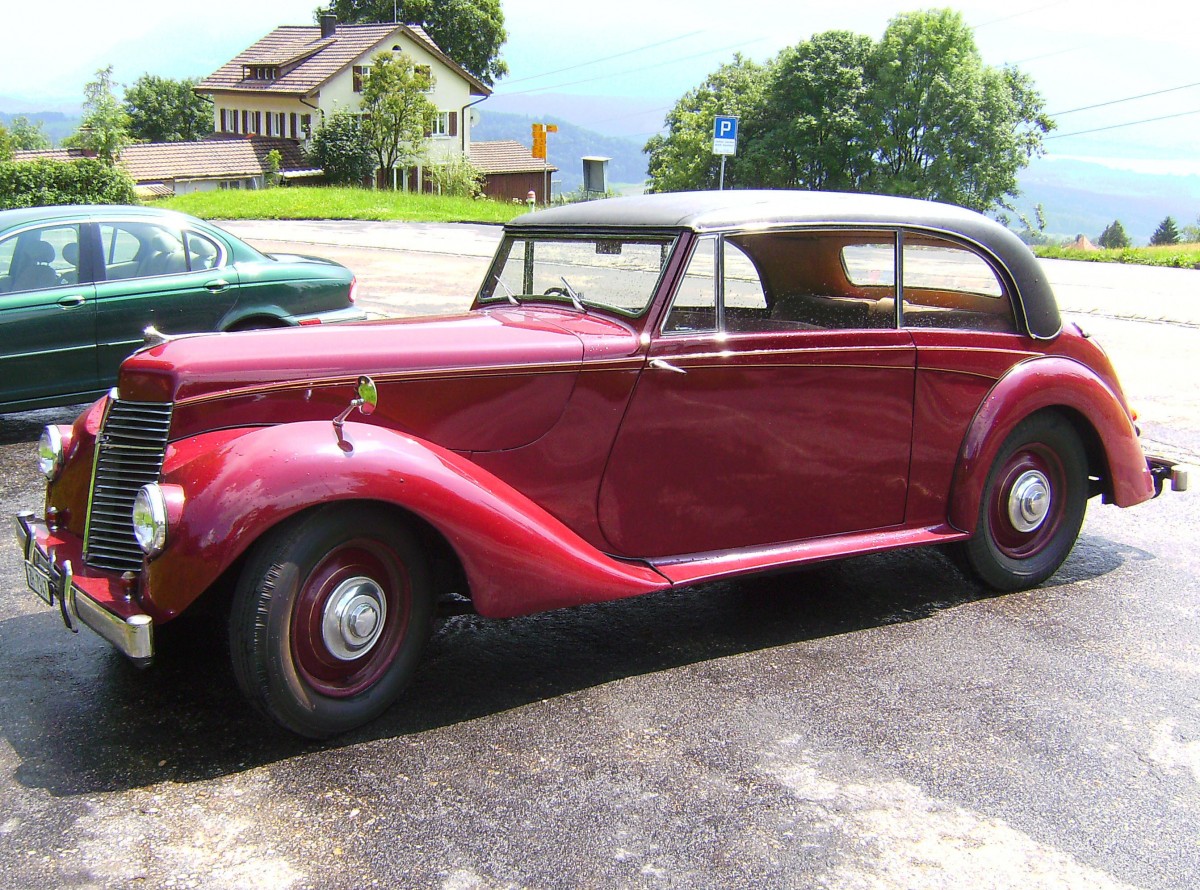 Bei diesem Fauxcabriolet handelt es sich um eine englische Reiselimousine Armstrong Siddeley Sapphire, Typ Typhoon, Jg. 1947, Hubraum 1991 ccm mit 6 Zylindermotor und Wilson Vorwählgetriebe. Armstrong Siddeley baute seinerzeit auch noch Flugzeugmotoren und wurde später von der Hawker Group übernommen (Hawker Hunter z.B.). Die Flugmotoren wurden unter der Bez. Hawker Siddeley produziert. Aufgenommen am 1. Juli 2009 in Wernetshausen, Kanton Zürich, Schweiz