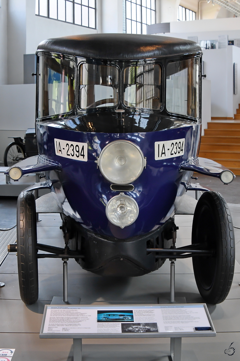 Dieser unter aerodynamischen Gesichtspunkten von Edmund Rumpler entwickelte Tropfenwagen stammt aus dem Jahr 1922 und ist eines von 2 erhaltenen Exemplaren. (Verkehrszentrum des Deutschen Museums München, August 2020)