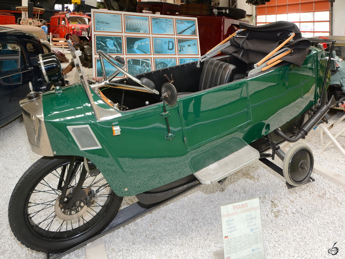 Dieses Mauser Einspurauto von 1928 stand Mitte Mai 2014 im Technik-Museum Speyer.