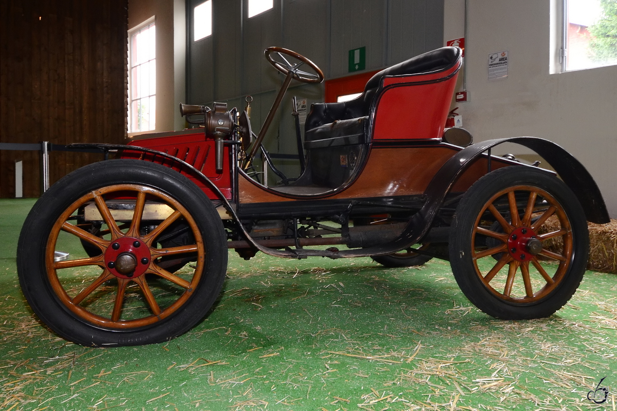 Ein Isotta Fraschini 6 1/2 HP aus dem Jahr 1902 ist Teil der Ausstellung im Luftfahrtmuseum Volandia in der Nähe des Flughafens Mailand-Malpensa. (Juni 2011)