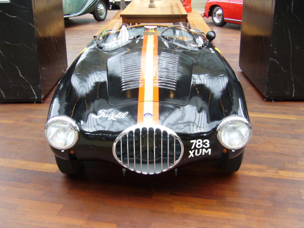 O.S.C.A. MT4 2DA von 1954. Es handelt sich um das Exfahrzeug von Marquis Alfonso de Portago, der 1957 mit einem Ferrari bei der Mille Miglia tödlich verunglückte. Der Wagen ist mit einem 1.490 cm³ 4-Zylindermotor mit ca. 120 PS motorisiert. Von dem Modell wurden ca. 80 Autos in verschiedenen Karosserievarianten gebaut. Dieses Auto ist zum "Schnäppchenpreis von ¤ 890.000,00 zu haben. Meilenwerk Düsseldorf.