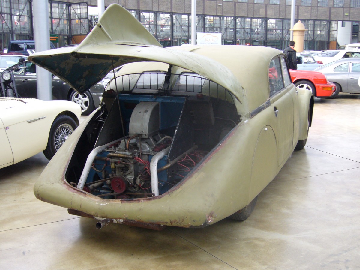 Heckansicht eines restaurierungsbedürftigen Tatra 77A. 1935 - 1938. Düsseldorfer Classic Remise am 08.03.2015.