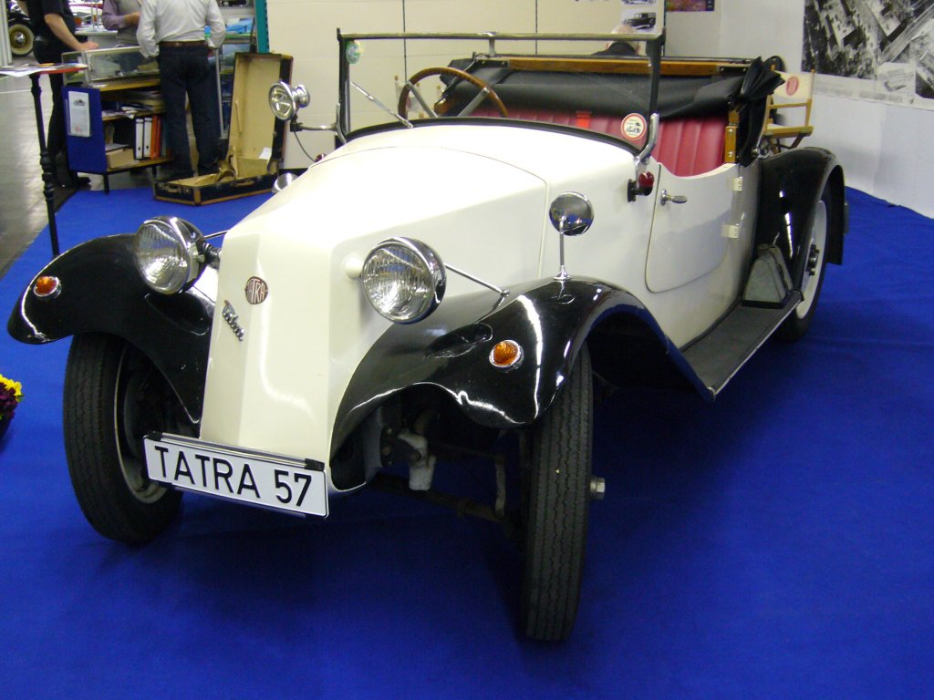 Tatra 57 Roadster. 1932 - 1949. Der Typ 57 wurde durch einen gebläsegekühlten V4-motor angetrieben, der aus 1.155 cm³ zwischen 18 und 20 Ps leistet. Ab 1938 wurde der Hubraum auf 1.256 cm³ aufgebohrt und die Leistung stieg auf 25 PS. Techno Classica Essen am 14.04.2013.