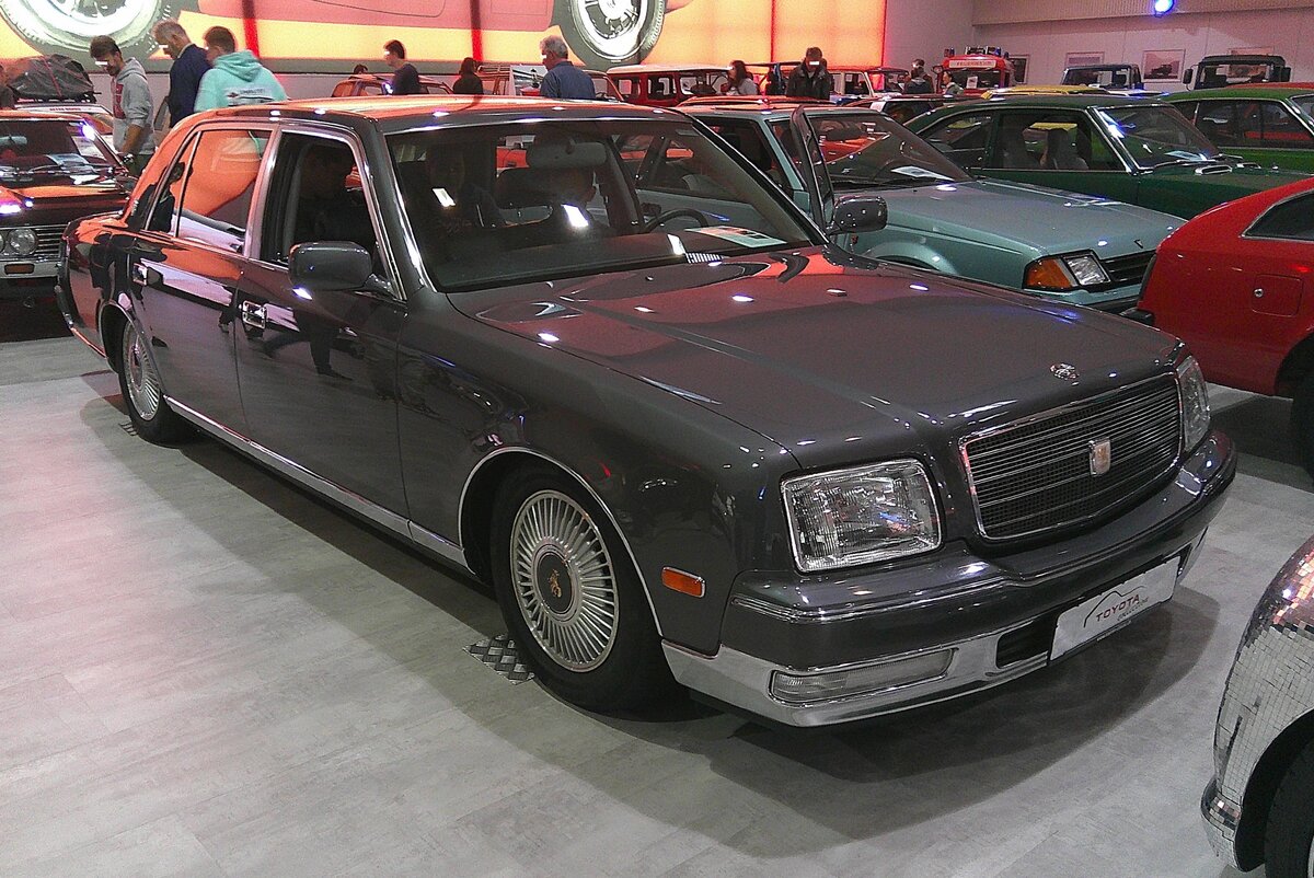 Toyota Century der Baureihe G50 aus dem Jahr 1997. Äußerlich in unaufdringlicher Eleganz gezeichnet, dient der Toyota Century japanischen Ministern als mobiles Büro oder mit Spezialkarosserien dem japanischen Kaiserhaus als Staatskarosse. Eine Alleinstellung garantiert dem Century auch der erste, in Serie gebaute japanische V12, mit dem sich die hier präsentierte zweite Generation des Century 1997 an die Spitze der Prestigeliga katapultiert. Vollendeter Komfort ist die Messlatte, die der Century in der Repräsentationsklasse setzt und so bereitet der V12 mit einem Hubraum von 4996 cm³ und einer Leistung von 280 PS maximales Fahrvergnügen. Luxuriöses Fahrvergnügen, das ist in Japan gleichbedeutend mit leiser Fortbewegung. Stille und Ruhe von der Außenwelt ist deshalb angesagt, sobald sich die Türen des aufwändig geräuschgedämmten Toyota Century schließen. Selbst wenn der V12 vehement vorwärtsdrängt, ist nur ein Säuseln zu vernehmen. Auch deshalb soll der damalige Kaiser Akihito bei den Ausfahrten im Century gerne die Tageszeitungen studiert haben. Toyota Collection Köln am 07.06.2025.