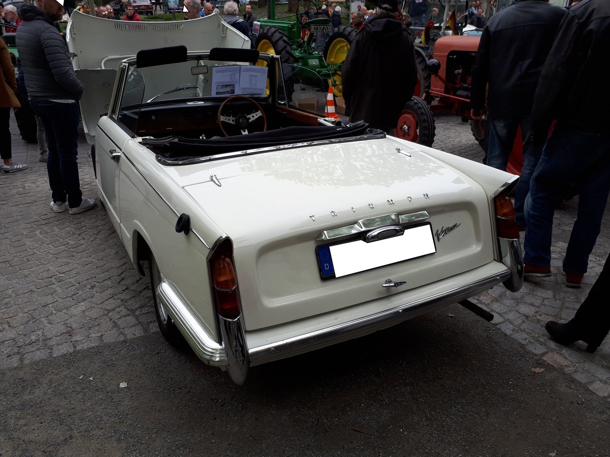 Heckansicht eines Triumph Vitesse MK2 Convertible, produziert von 1968 bis 1971. 12. Oldtimertreffen in Essen-Kettwig am 01.05.2019.