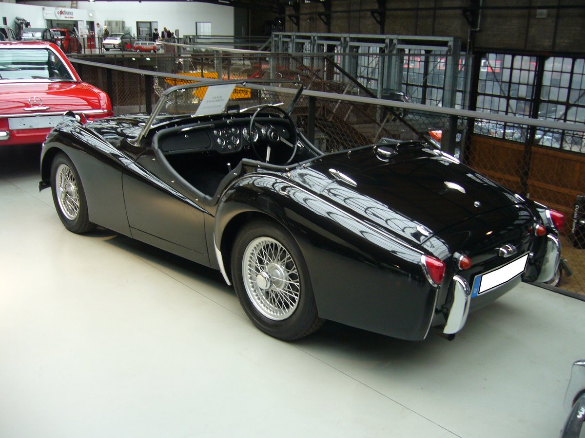 Heckansicht eines Triumph TR3A im Farbton black. Classic Remise Düsseldorf am 03.10.2020.