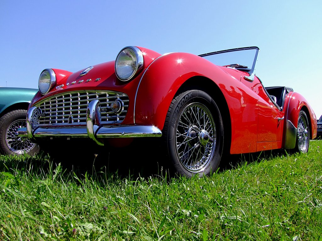 Heckansicht eines Triumph TR3A im Farbton signal red aus dem Jahr 1959. British Car and Motorcycle Meeting am 20.07.2025 an Mo´s Bikertreff in Krefeld. Michael H.