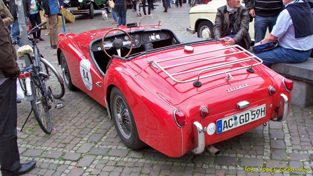 Heckansicht eines Triumph TR3A im Farbton signal red aus dem Jahr 1959. British Car and Motorcycle Meeting am 20.07.2025 an Mo´s Bikertreff in Krefeld. Michael H.