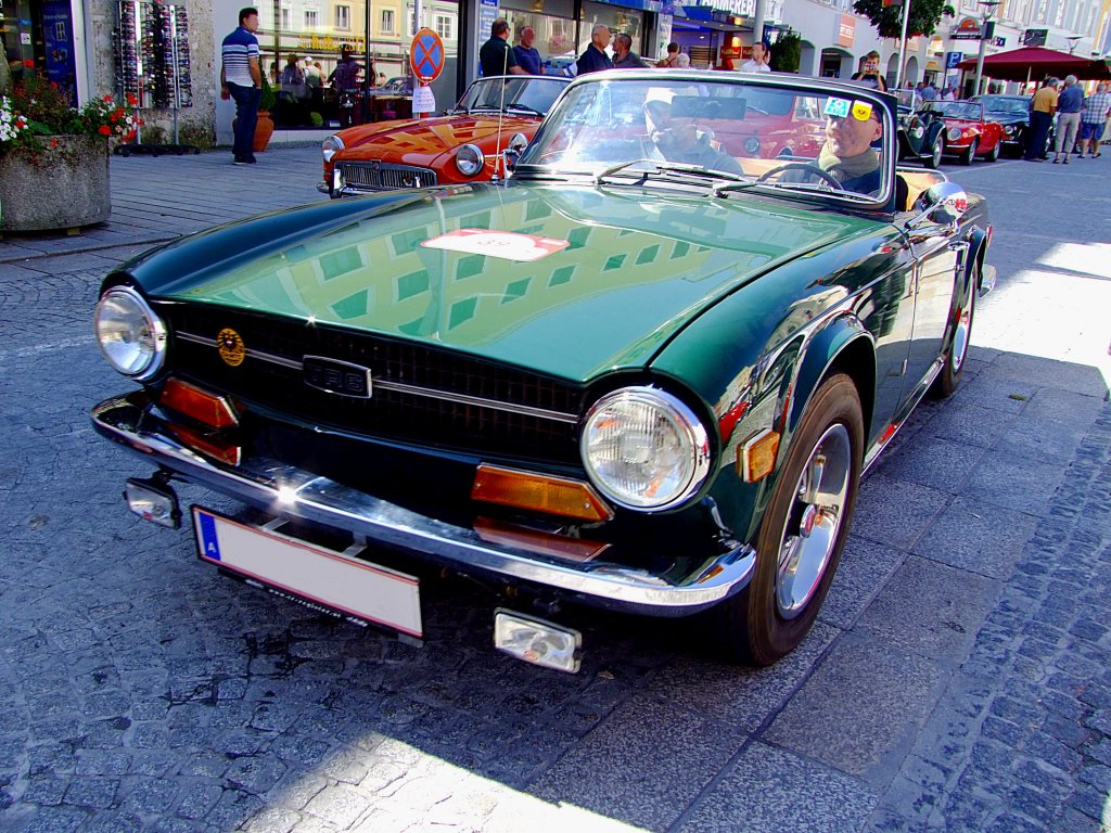 Triumph TR6, erreicht als Startnummer 39 anlässlich der 23.Landl Rallye sein Zwischenziel Ried; 120818