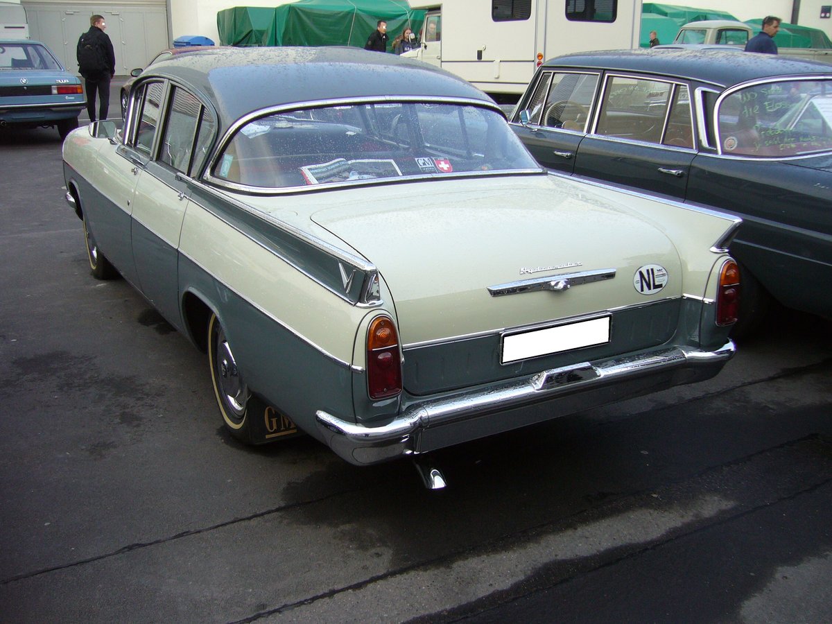 Heckansicht eines Vauxhall Cresta Series PA, gebaut von 1957 bis 1962. Außengeländer der Techno Classica Essen am 14.04.2019.