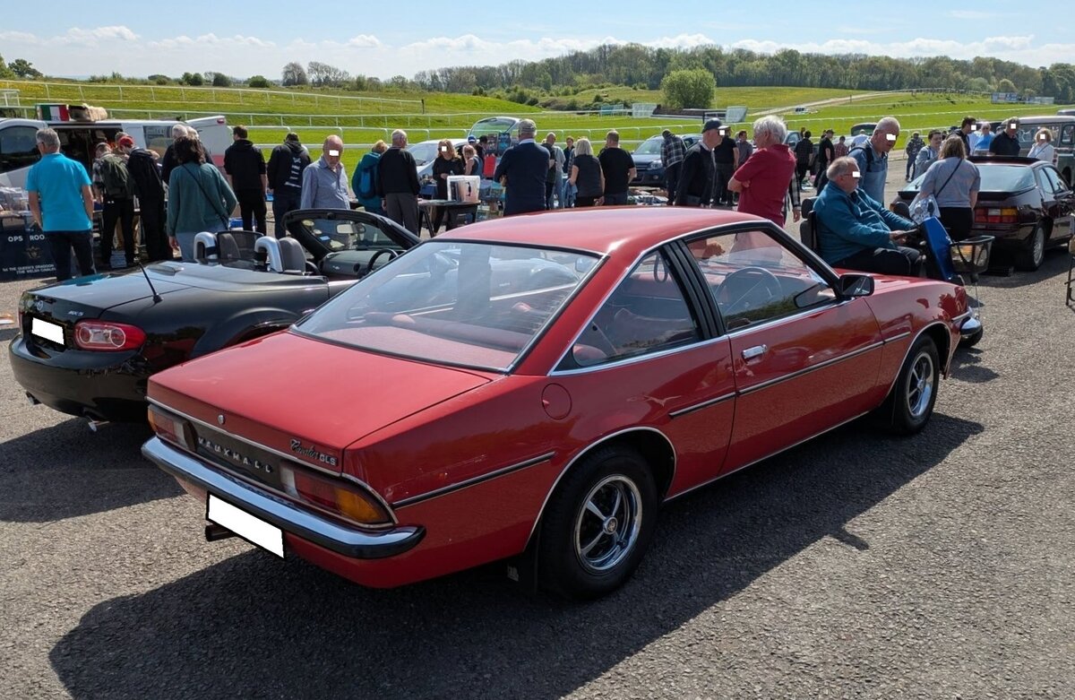Vauxhall (Opel) Chevette Kombi-Limousine im Farbton flamencorot, verkauft von 1980 bis 1982. Die Chevette wurde bei Vauxhall produziert und über das Opel-Händlernetz vertrieben. Das Modell sollte die Zeit bis zum Erscheinen des neuen Kadett D, für Kompaktwageninteressenten überbrücken. Bis auf die Frontpartie waren die Karosserieteile mit denen des Kadett C City identisch. Da der Wagen aber komplett bei Vauxhall gefertigt wurde, waren auch Schrauben im Zoll-Maß verbaut. Das führte bei Service-Arbeiten beim Opel-Händler des öfteren zu Schwierigkeiten. Angetrieben wird der Wagen von einem Vierzylinderreihenmotor, der aus einem Hubraum von 1256 cm³ wahlweise 53 PS oder 57 PS leistet. 17. Oldtimertreffen in der Altstadt von Essen-Kettwig am 01.05.2025.