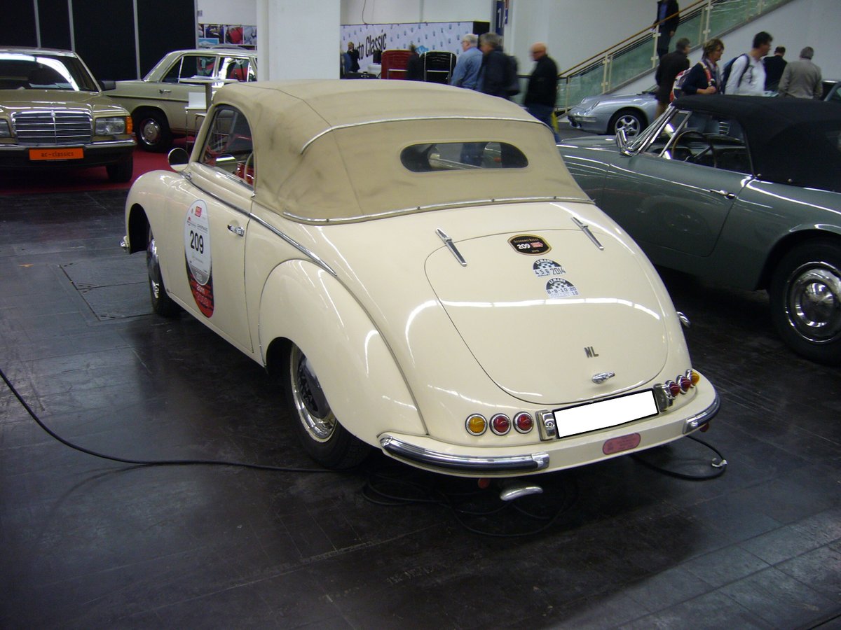 Heckansicht eines Dyna-Veritas Cabriolet. 1950 - 1952. Von diesem Modell wurden insgesamt nur 176 Fahrzeuge produziert. Techno Classica Essen am 24.03.2018.