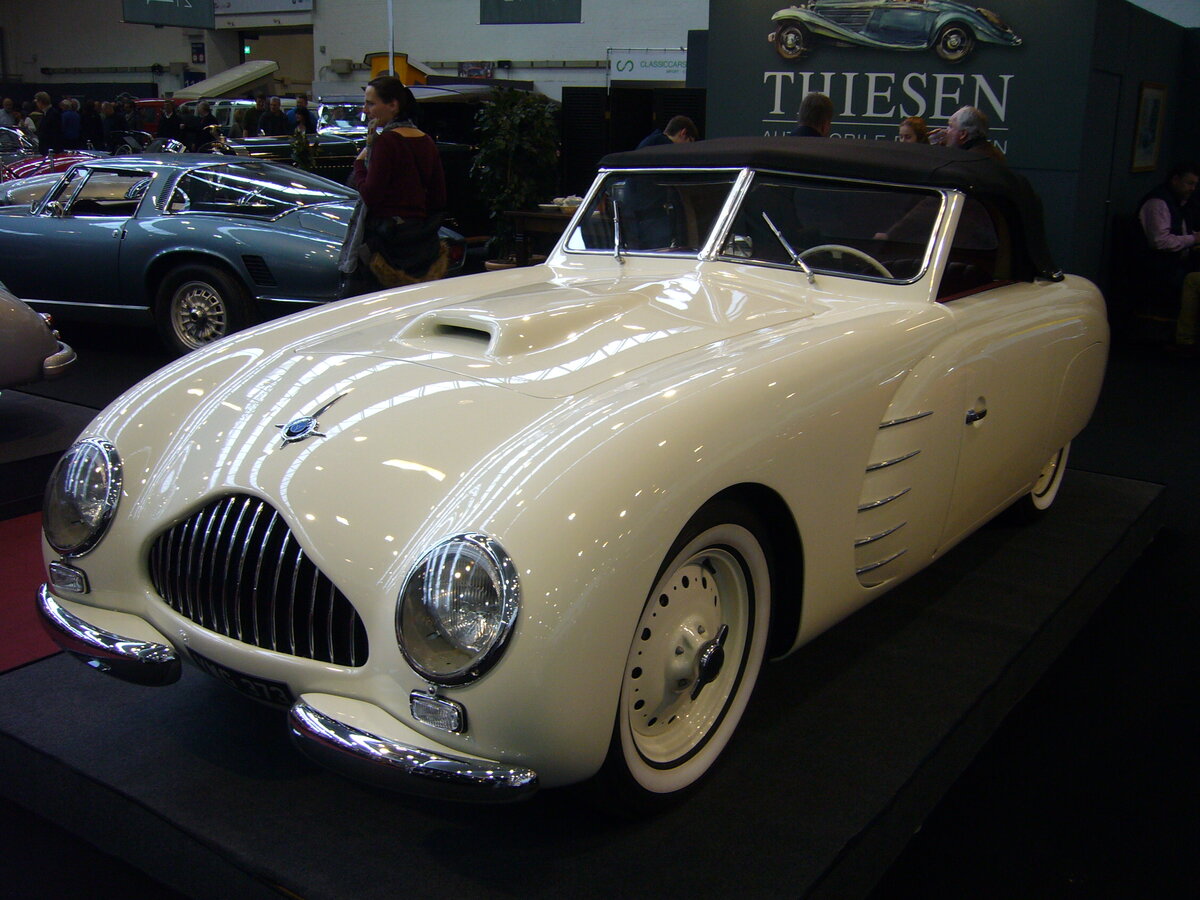 Veritas C90 Scorpion aus dem Jahr 1950. Die, zu diesem Zeitpunkt in Muggensturm/Kreis Rastatt ansässige, Marke Veritas ließ die Karosserien für das Cabriolet-Modell Scorpion bei den Karosseriewerken Spohn in Ravensburg fertigen. Die Motoren bezog Veritas von Heinkel. Dieser Heinkel-Sechszylinderreihenmotor hat einen Hubraum von 1988 cm³ und leistet genau 100 PS. Die Höchstgeschwindigkeit dieses damals DM 18.350,00 teuren Cabriolets wurde mit 165 km/h angegeben. Techno Classica Essen am 22.03.2018.
