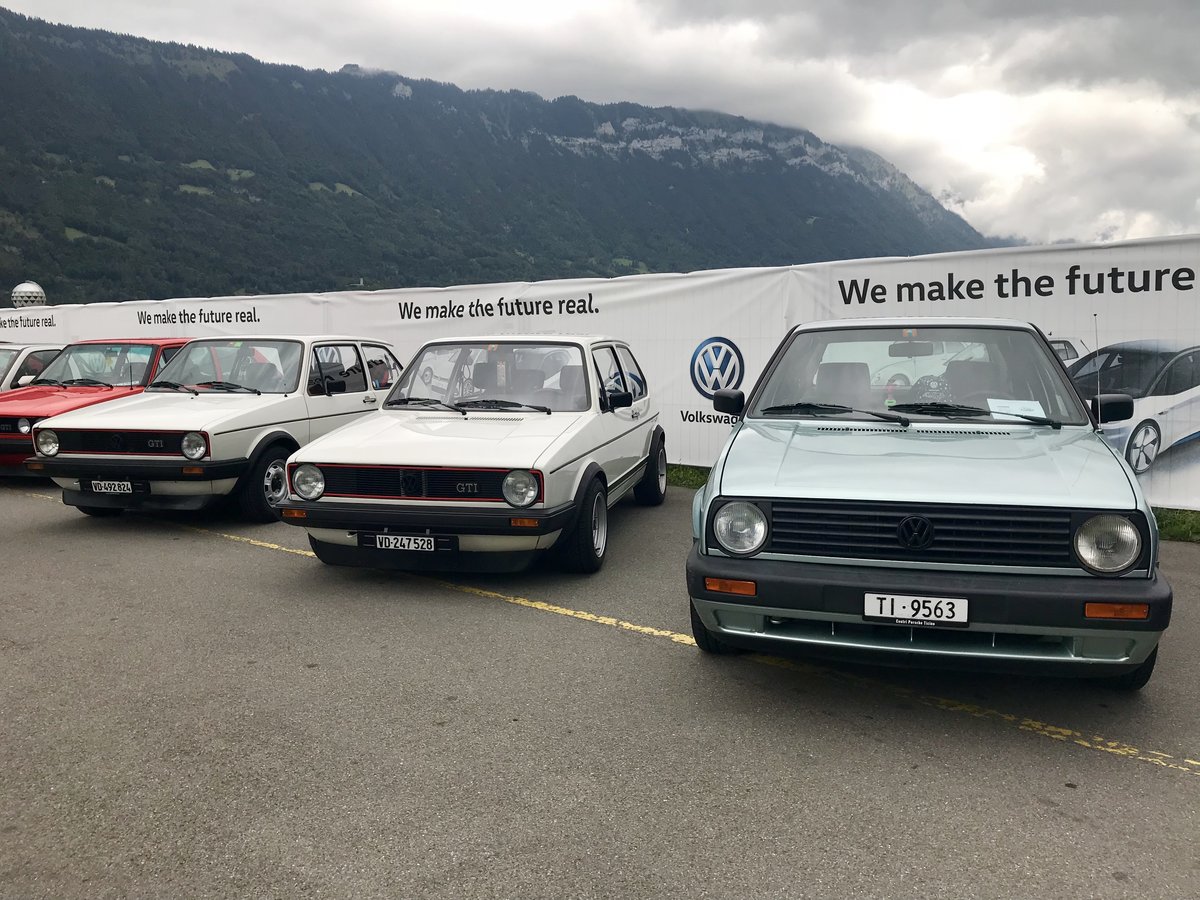 Drei VW Golf 1 beim 70 Jahre VW Volksfest am 25.8.18 in Interlaken ausgestellt.