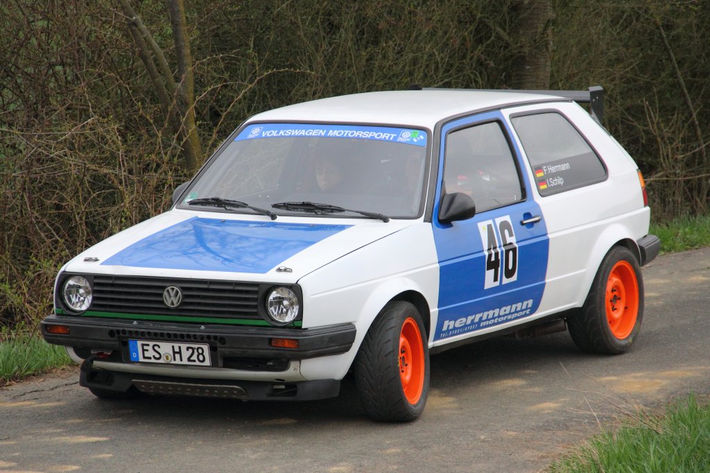 VW Golf II GTI bei der Streckenbesichtigung der Rally Sonnefeld (AMC Hohe Aßlitz) am 20.04.2013. (Frank Herrmann/ Inge Schlip/ 46)