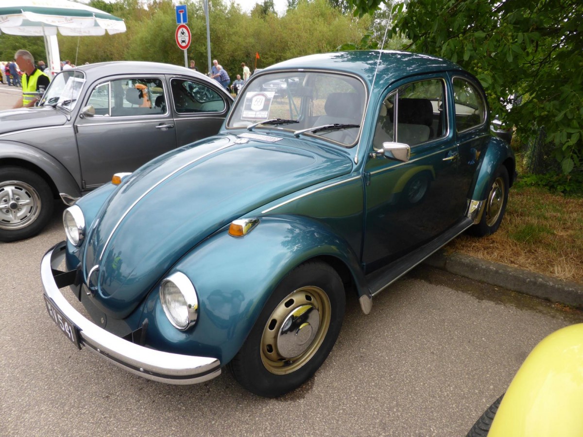 VW Typ 1 "Käfer" im Farbton pastellweiß aus dem Modelljahr 1969. In diesem Modelljahr konnte der Kunde bzw. die Kundin, abgesehen vom Standardmodell 1200, noch zwischen dem 1300´er und dem 1500´er Motor wählen. Beides sind im Heck verbaute Vierzylinderboxermotoren. Der 1300´er hat einen Hubraum von 1285 cm³ und leistet 40 PS, während der 1500´er einen Hubraum von 1493 cm³ mit 44 PS Leistung hatte. Beide Modelle waren auch mit Automatic-Getriebe lieferbar. Oldtimertreffen am Cafe del Sol in Gelsenkirchen am 12.10.2025. Michael H.