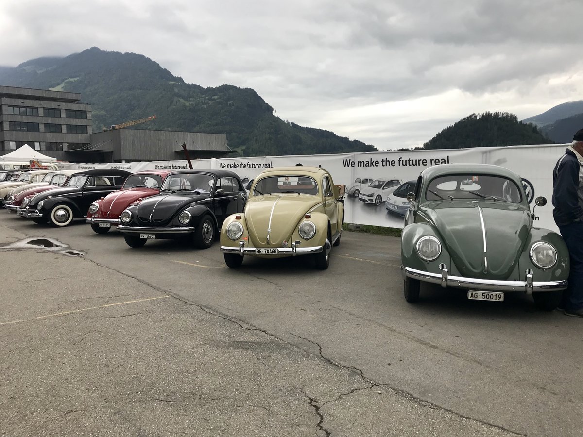 Mehrere ausgestellte VW Käfer am 25.8.18 beim VW Volksfest in Interlaken.