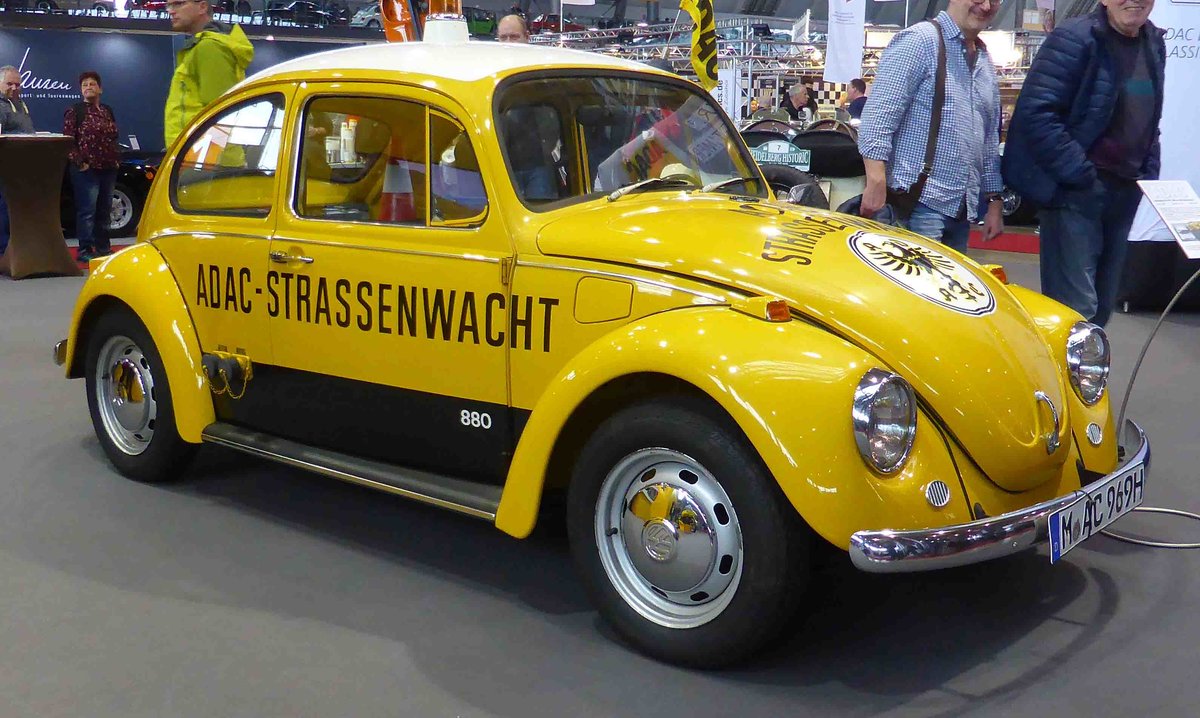=VW Käfer der ADAC-Strassenwacht, ausgestellt bei den Retro Classics in Stuttgart, 03-2019