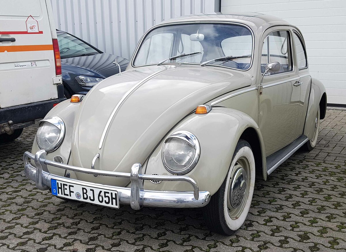 =VW Käfer, ausgestellt auf der Freifläche der Technorama Kassel im März 2023