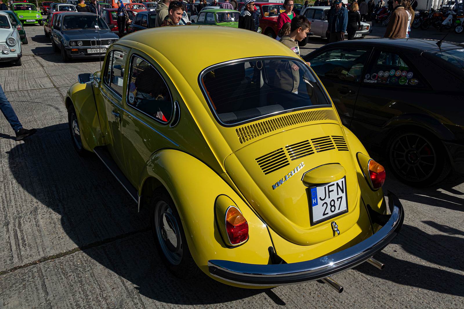 Hier ist ein 1971er VW Käfer von hinten zu sehen. Die Aufnahme stammt von 03.2024.