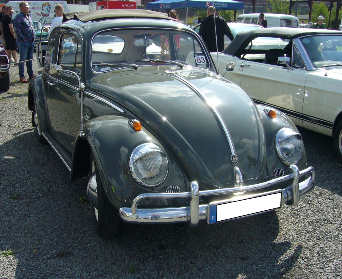 VW Typ 1 "Käfer" des Modelljahres 1962 im Farbton L469 anthrazit. Der abgelichtete Käfer ist ein Exportmodell. Der im Heck verbaute, luftgekühlte, Vierzylinderboxermotor hat einen Hubraum von 1192 cm³ und leistet 30 PS. Oldtimer-Revival auf dem Gelände der Kokerei Zollverein in Essen am 28.07.2024.
