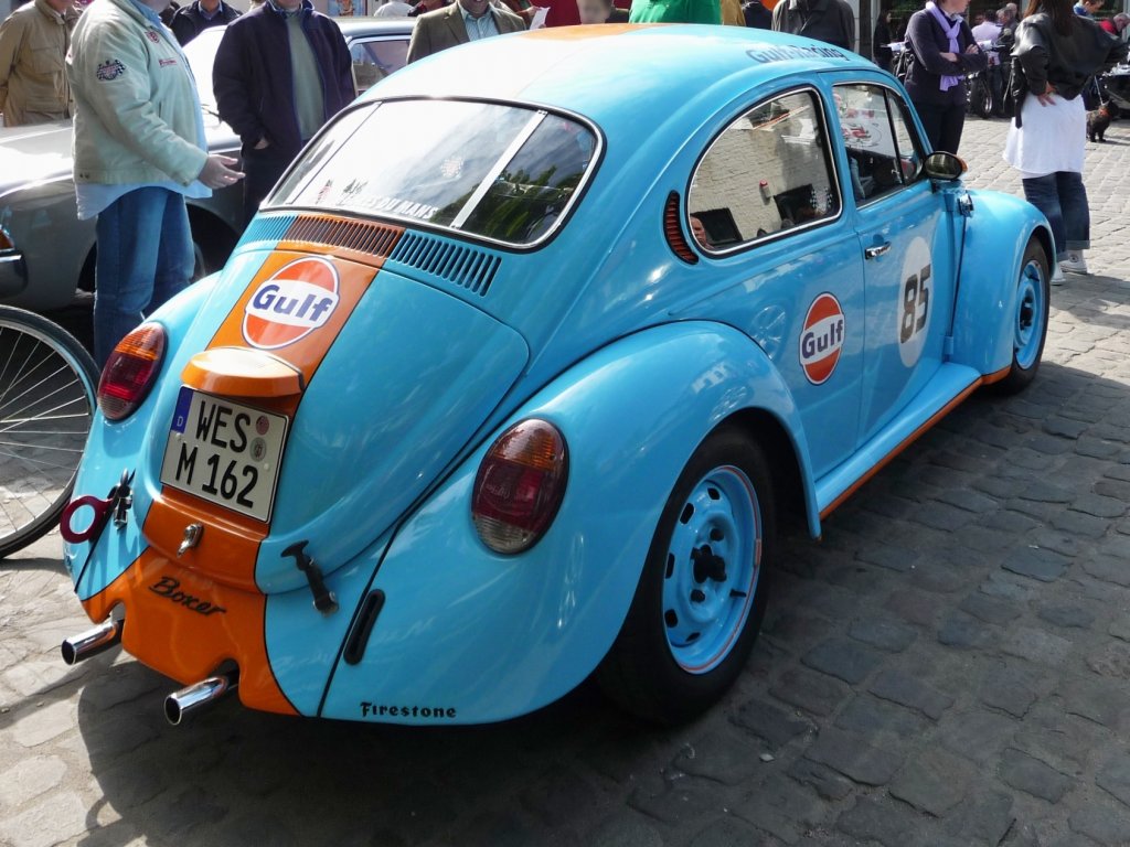 Immer dicht umlagert war dieser VW Käfer im Renn-Dress bei der Oldtimer-Rallye in Hüls. Ob er wirklich bei den "24 Heures du Mans" war?