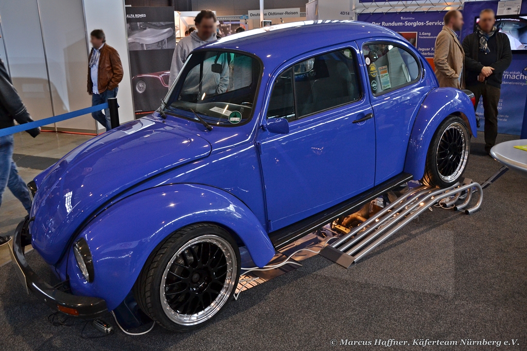 Ein aufgemotzter VW Käfer 1303, gesehen am 10. März 2013 bei Retro Classics in Stuttgart.