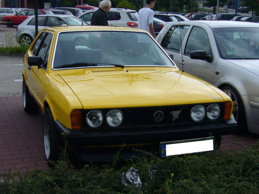 VW Scirocco 1 GTI (Typ 53). 1976 - 1977. Der bei Karmann in Osnabrück produzierte Scirocco 1 wurde schon im März 1974 vorgestellt. Erst im Juni 1976 war dann der GTI, mit dem 110 PS aus 1.588 cm³ leistenden 4-Zylinderreihenmotor, lieferbar. Im August 1977 erfolgte ein Facelift mit anderen, vorderen Blinkern und kunstsoffummantelten Stoßfängern, mit denen der abgelichtete Wagen übrigens versehen ist. Parkplatz eines Supermarktes in Mülheim an der Ruhr.