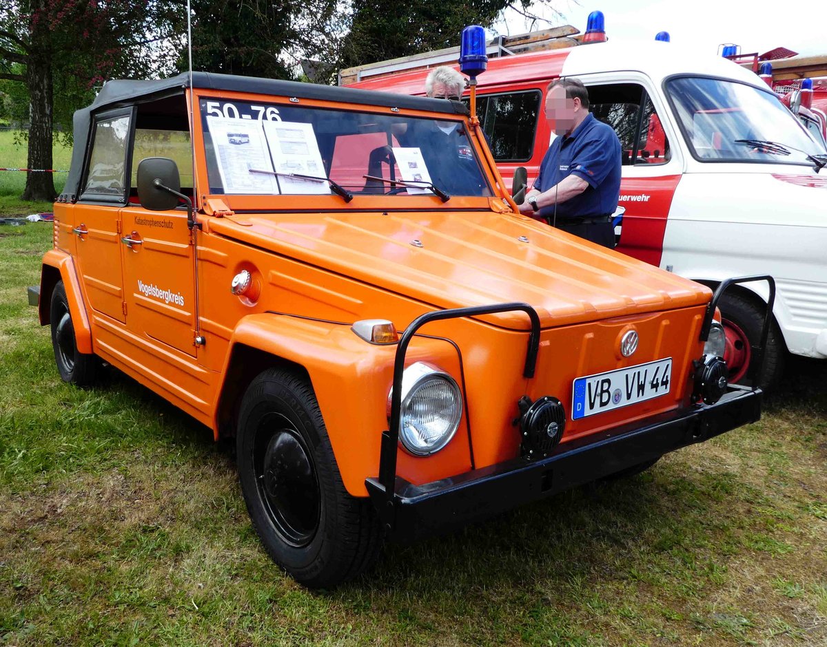 =VW 181 als Fahrzeug des Katastrophenschutzes vom Vogelsbergkreis, steht im Mai 2017 in der Burgenstadt Schlitz