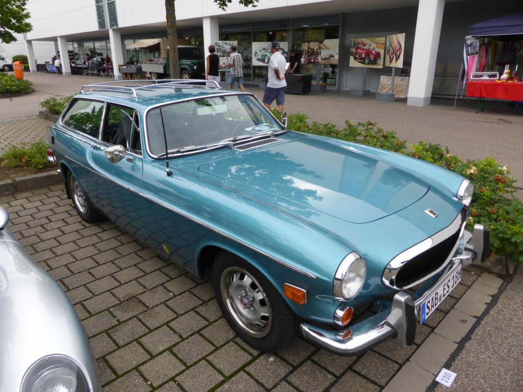 Heckansicht eines Volvo P1800 ES, produziert in den Jahren 1972 und 1973 im Volvo-Stammwerk Lundby bei Göteborg. Im Volksmund machte sich, aufgrund der gläsernen Heckklappe des Wagens, schnell der Begriff "Schneewittchensarg" breit. Der Vierzylinderreihenmotor hat einen Hubraum von 1986 cm³ und leistet 125 PS. Die Höchstgeschwindigkeit wurde mit ca. 190 km/h angegeben. Von diesem Modell produzierte die schwedische Marke rund 8100 Fahrzeuge. Straßensichtung in Mülheim an der Ruhr-Speldorf am 02.10.2025. Michael H.