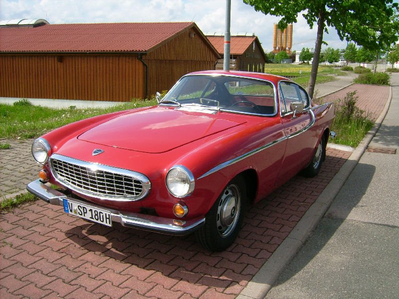 Volvo P 1800 S im Farbton körsbärsröd, gebaut von 1963 bis 1972. Das von "Frua" gezeichnete Coupe stand bereits ab 1961 bei den Volvo-Händlern. Anfangs wurde der Wagen bei Jensen in West Bromwich/GB montiert. Aufgrund von Qualitätsmängeln, wurde die Produktion im Jahr 1963 ins Volvo-Stammwerk Lundby bei Göteborg verlegt. Die hier produzierten Fahrzeuge sind am Buchstaben S (für Schweden bzw Sverige) in der Typenbezeichnung erkennbar. Von 1961 bis 1968 hatte der P1800 einen Vierzylinderreihenmotor mit einem Hubraum von 1778 cm³ und einer Leistung von 103 PS. Nach den Werksferien des Jahres 1968 wurde der sogenannte B2-Motor mit einem Hubraum von 1985 cm³ und einer Leistung von 124 PS verbaut. Da der gezeigte P1800S ein solches Modell ist dürfte er ab Sommer 1968 gebaut worden sein. Oldtimertreffen auf dem Gelände des Bikertreffs Mutter Vogel in Marl am 28.09.2025. Michael H.
