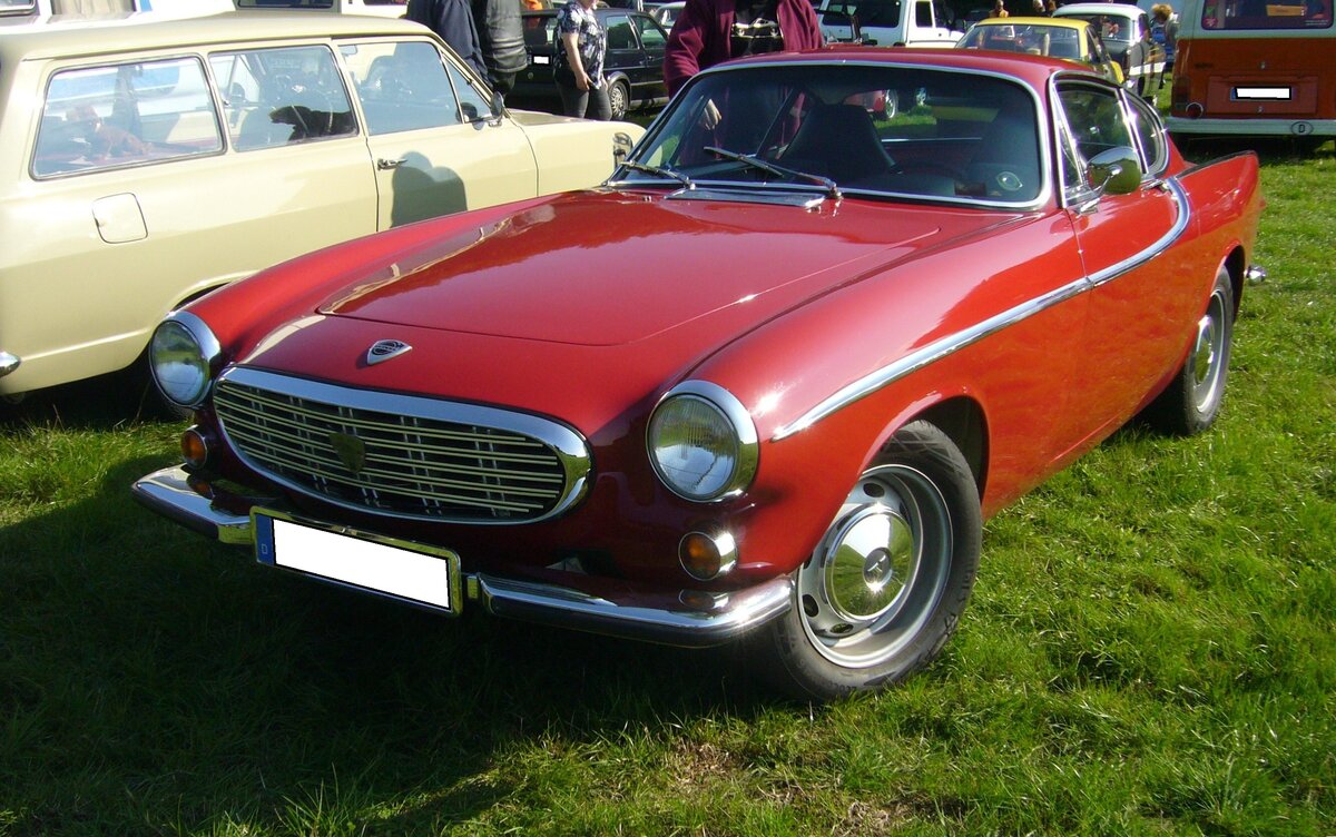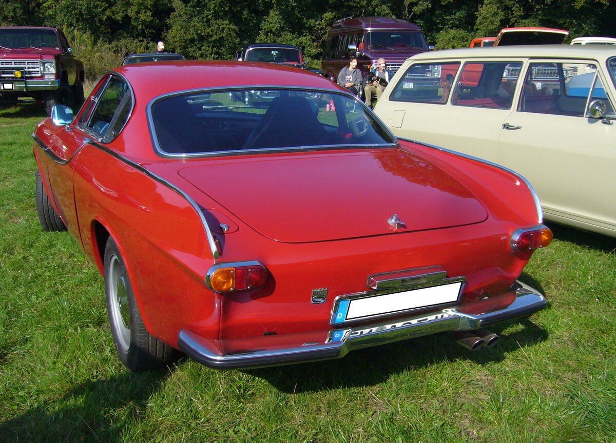 Volvo P1800 E. 1969 -1972. Der P1800 wurde schon 1961 vorgestellt. Hier wurde ein Fahrzeug der letzten Serie mit dem 1.986 cm³ Motor mit 124 PS und einer Bosch-D Jetronic Einspritzanlage abgelichtet. Die Spitzengeschwindigkeit soll 190 km/h betragen haben. Von diesem hübschen Coupe sind 39.407 Einheiten von den Bändern bei Jensen/GB (bis 1963) und im Volvo-Stammwerk Lundby vom Band gelaufen sein. Meilenwerk Düsseldorf.
