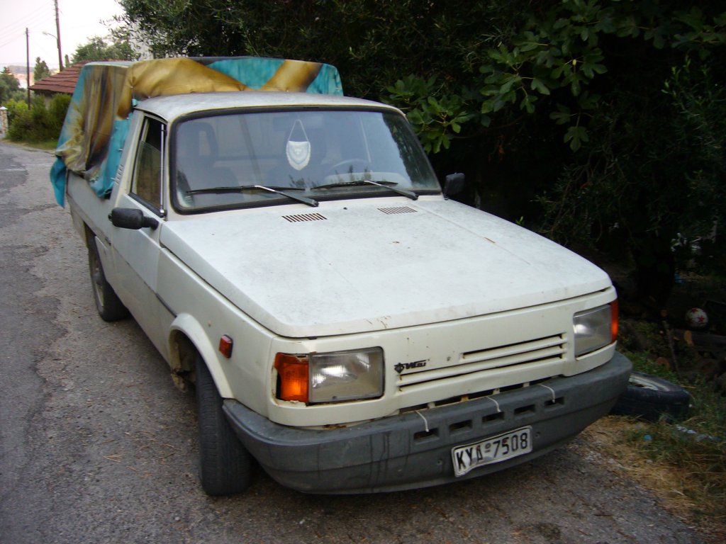 Wartburg 1.3 Trans. 1988 - 1991. Dieser Pickup ist vom harten Leben bei einem korfiotischen Olivenbauern gekennzeichnet. Astrakeri/Corfu am Abend des 18.08.2011.