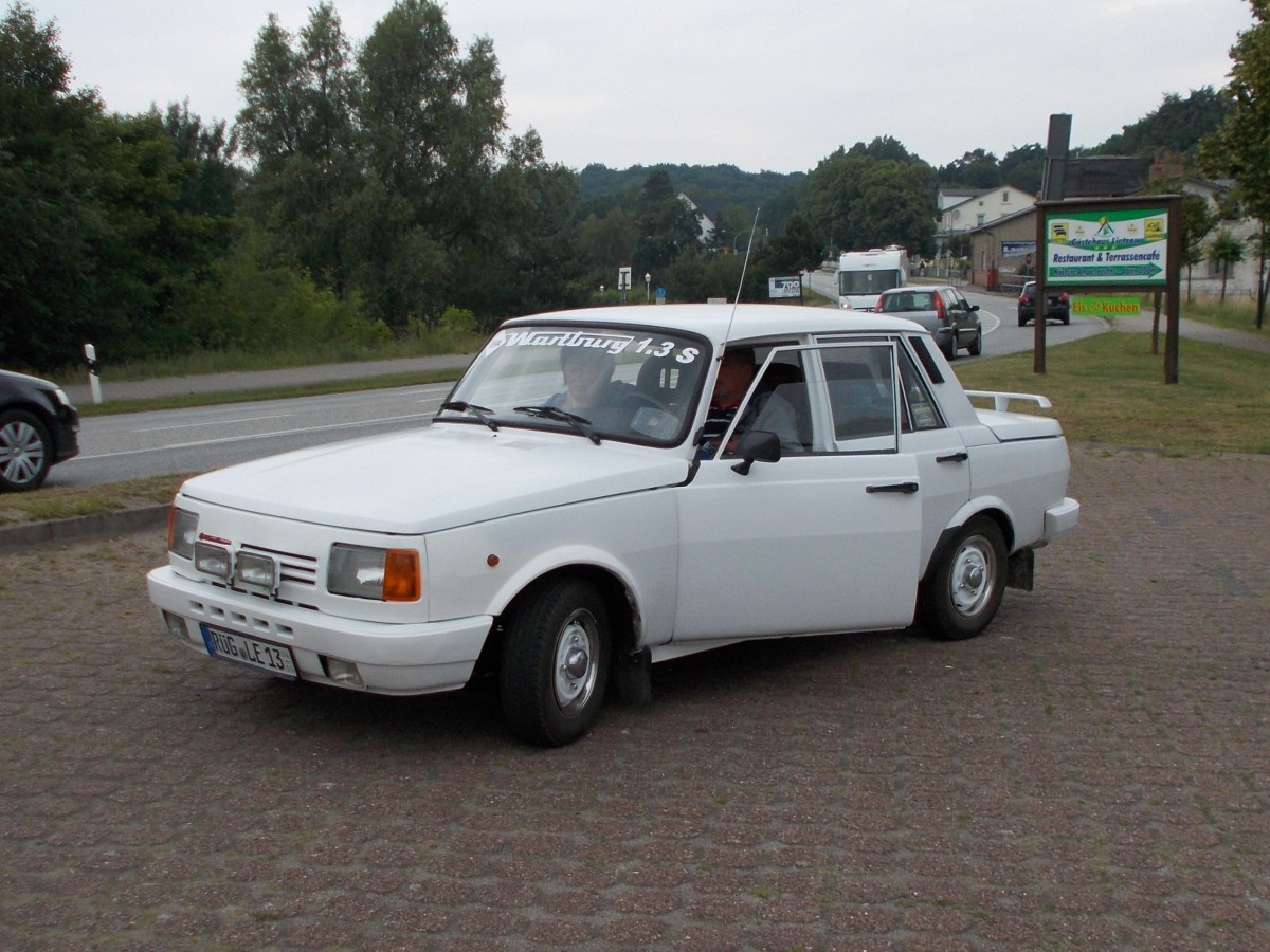 Sehr gut gepflegt ist dieser Wartburg 1.3.S den ich,am 28.Juni 2014,in Lietzow fotografierte.