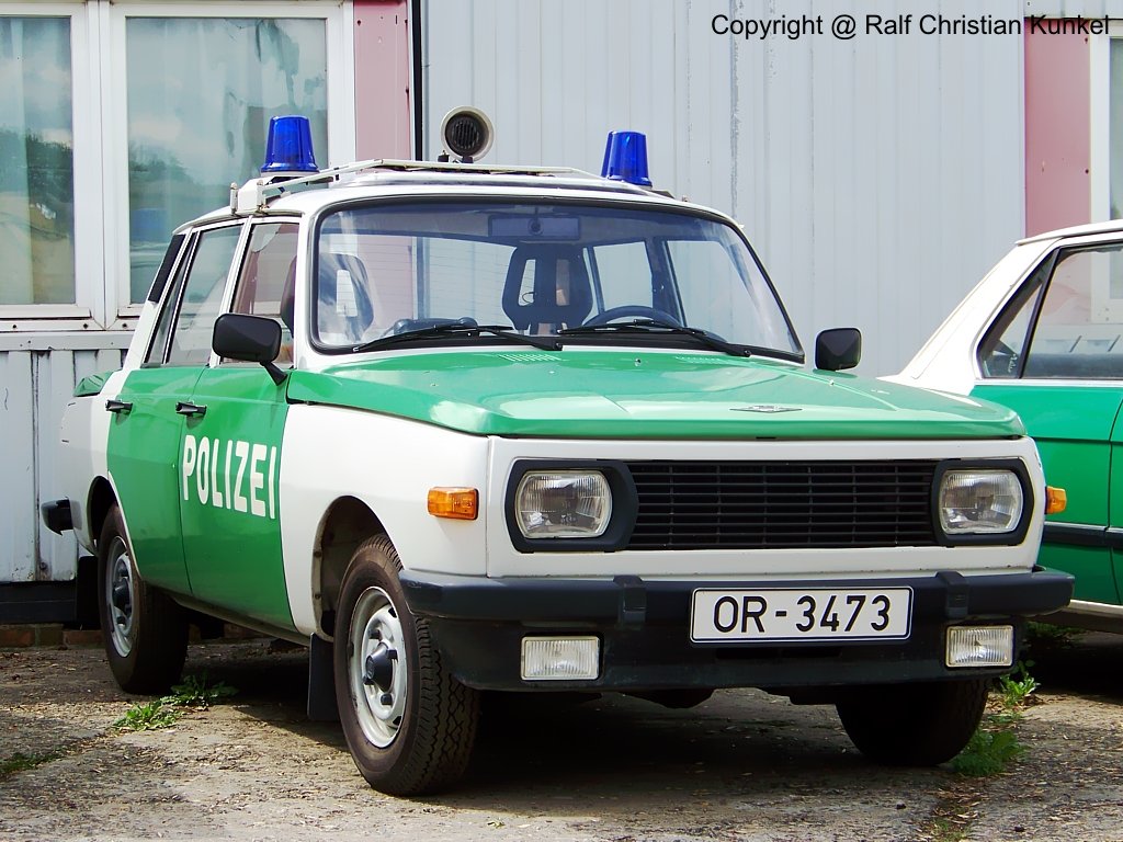 Wartburg 353 W FuStw - Funkstreifenwagen (Limousine) der Polizei, nach der Wende wurden einige Wartburgs entsprechend umlackiert, gekennzeichnet und in den Dienst der Deutschen Polizei übernommen, VEB IFA-Automobilwerke Eisenach (AWE) - fotografiert am 25.07.2009 zum Museumfest am Blaulichtmuseum in Beuster - Copyright @ Ralf Christian Kunkel