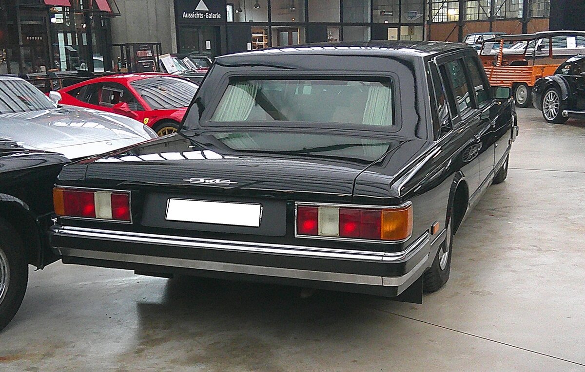 ZIL 115 Typ 41044. Die Modellreihe 115 wurde ab November 1978 ausgeliefert und wurde in kleinen Stückzahlen wahrscheinlich bis in die Jahre 2012 oder 2013 gebaut. Vom Typ 41044 (viertüriges Cabriolet mit kurzem Radstand) wurden wohl nur sehr kleine Stückzahlen gebaut. Für den Vortrieb dieses riesigen Cabriolets sorgt ein V8-Motor mit einem Hubraum von 7695 cm³ und einer Leistung von 311 PS. Classic Remise Düsseldorf am 15.01.2026.